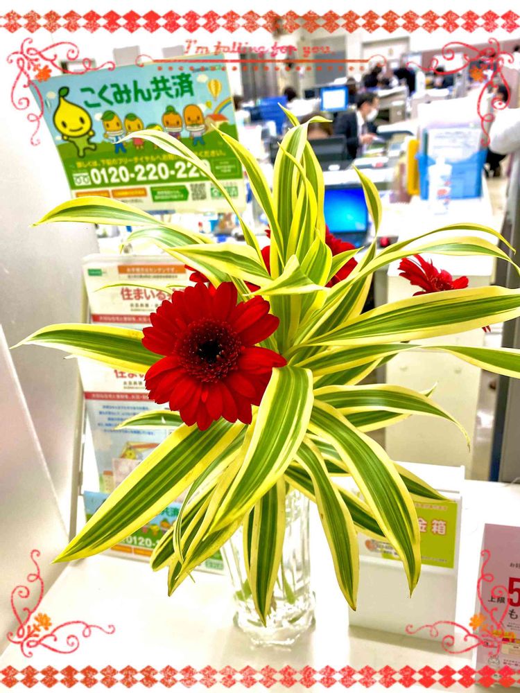 (´・ω`・)エッ? 銀行さんに飾ってあるなら、切り花でも幸福の木あたりのがイイぢゃん(・ω・`*)ネー