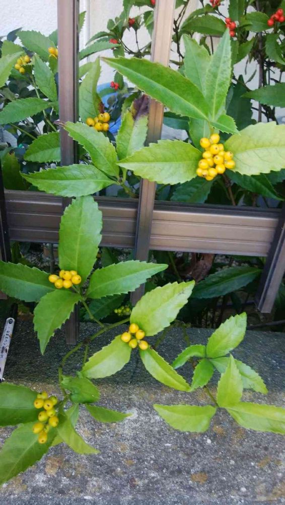 こちらのお宅には赤と黄色の千両が隣り合って植えてありますか❤💛