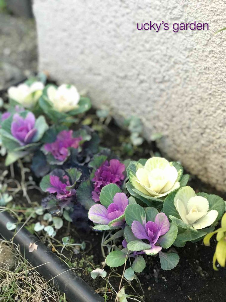 葉牡丹のデュエットさんはお家に帰ってから調べたら、違う種類の子をあらかじめ寄せ植えしてひと苗として売ってるものみたいでした。