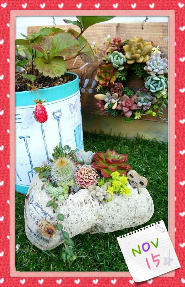 可愛く紅葉している多肉寄せ植えと一緒に_📸