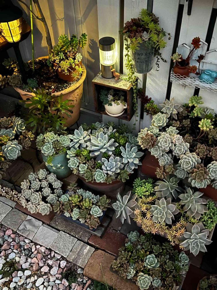 ソーラーライトに照らされた多肉ちゃんも可愛いですね。