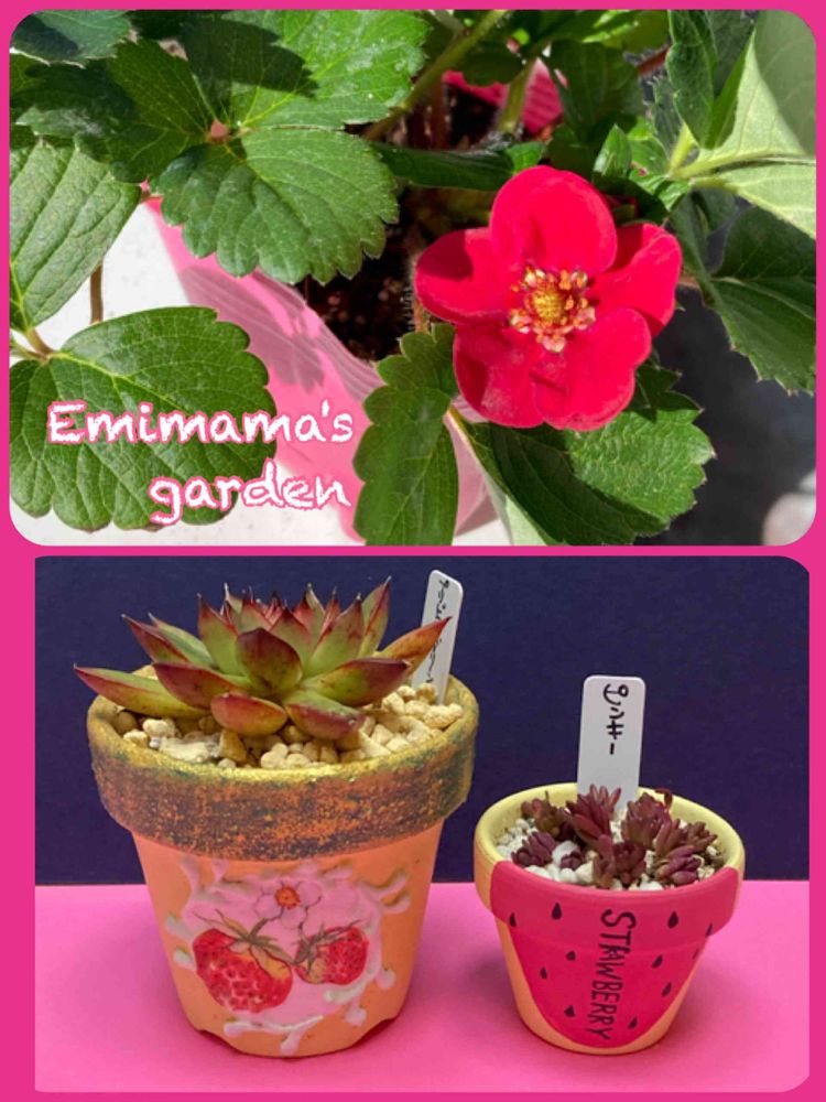 ↘️やっと使う事が出来ました~mokoさんのいちごリメ鉢🍓にクリスタルさんからのピンキーを 可愛く紅葉してます❤️