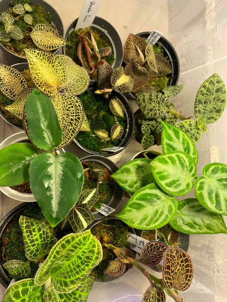 ボックス内のジュエルオーキッド、アグラオネマ、クリスタリナムです。