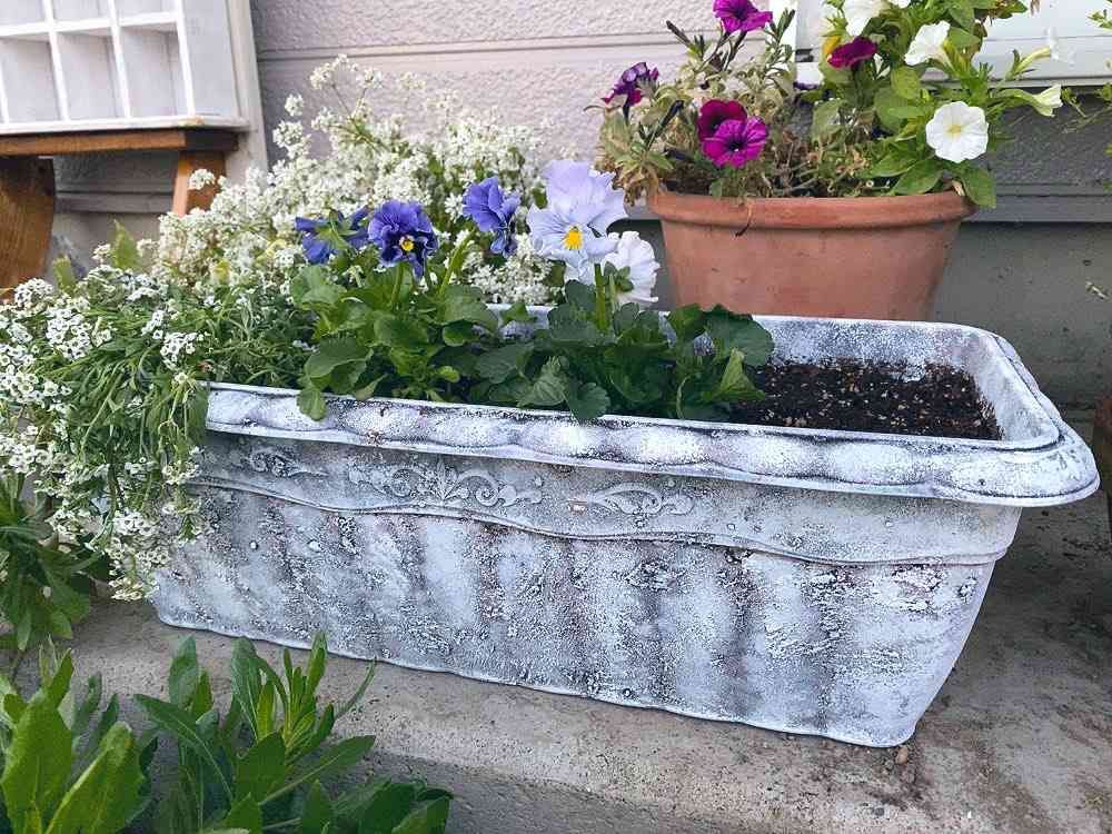 プラスチックのプランターにセメントをまぶしてペイントしリメイクしてみました。