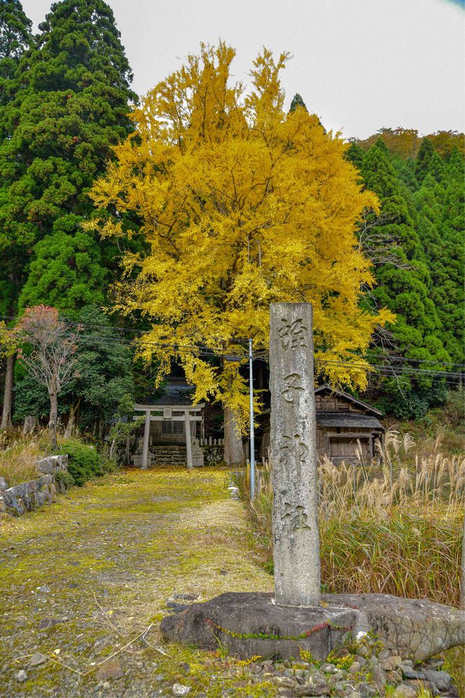 峠の山道に入る手前の集落の神社で大銀杏が…🤗🤗