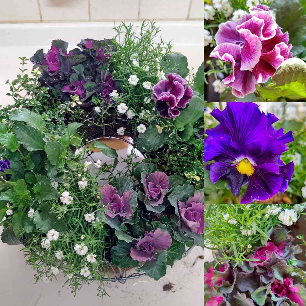 「絵になるスミレ」フリフリが可愛いですよね~💞全部で4種類、直営店で先行販売されてた物が、10月下旬からHCや園芸店にも並んだとか😆迷って迷って、2種ずつ2回に分けて買いました😁ハンギングリース、4月頃まで綺麗に咲いてくれるはず🎶