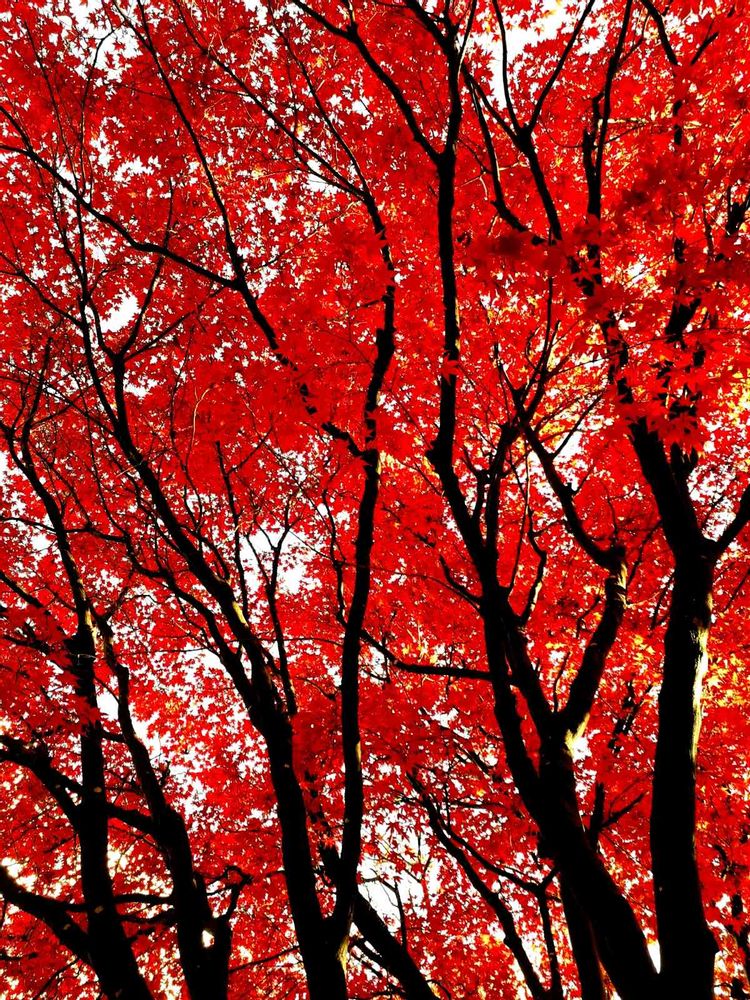 真っ赤な紅葉をバックに黒い幹〜枝が美しいですね‼️