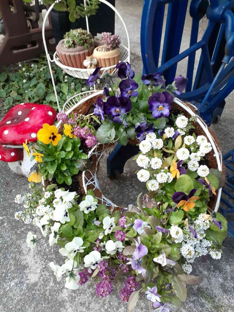 ビオラとアリッサムで、初めてリース作ってみました😊🌸‼️