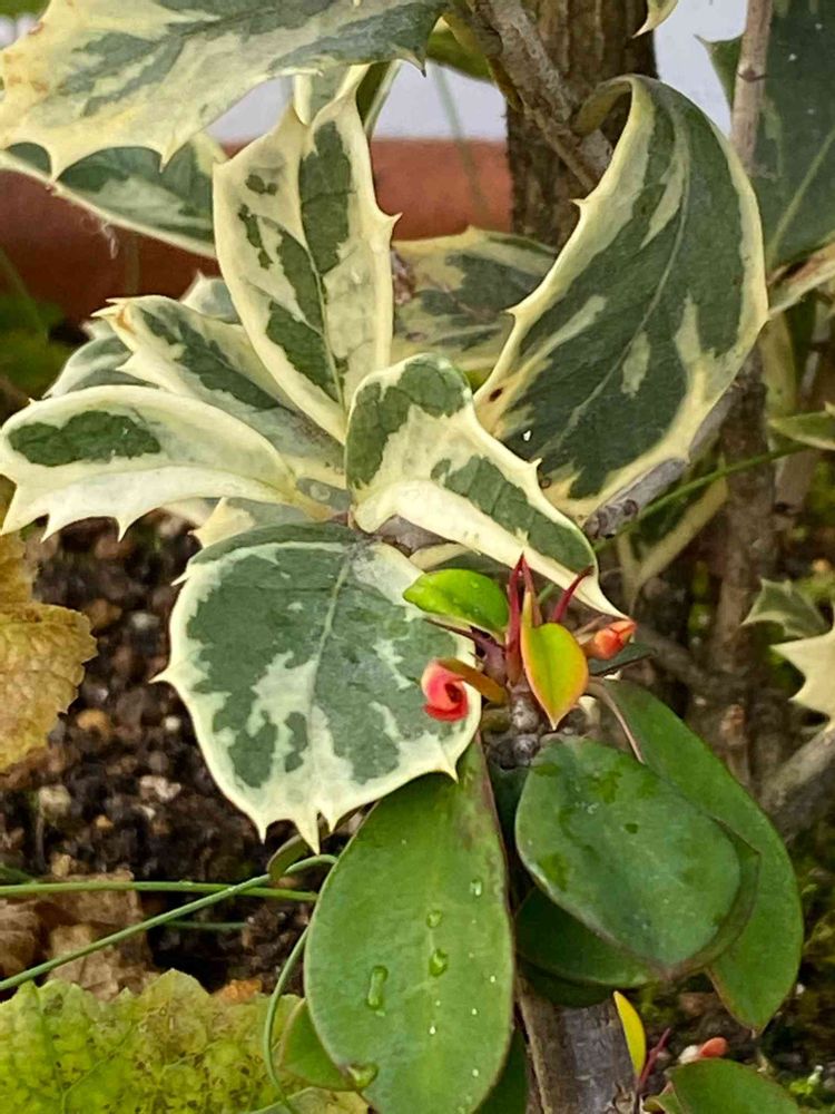 まだ日中は☀️出るからか⁉️(キャノピーで日陰になるが)ちっさな赤いツボミ付けてるョ❣️