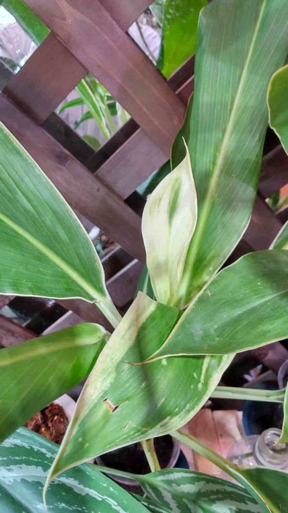 開店の時に送って頂いたスタンド花の中に居て誰も連れて帰ってくれなかったドラセナさん~新芽は斑入りが出て来ました。