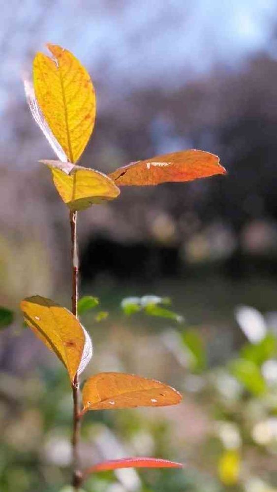 デッキの角の未だ細々とした西洋カマツカの木が、白花沈丁花の葉の中からも立ち上がっています。…今その葉がきれいに紅葉して、デッキの中から投稿していても目を引きます。