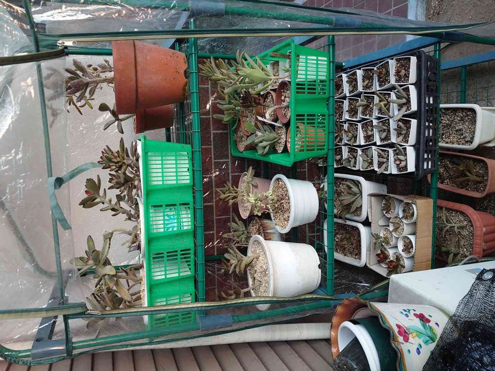 コレは前に突風で破壊されたビニールハウスだけど私なりに頑張って仕立て直して一応の形にしたよ。