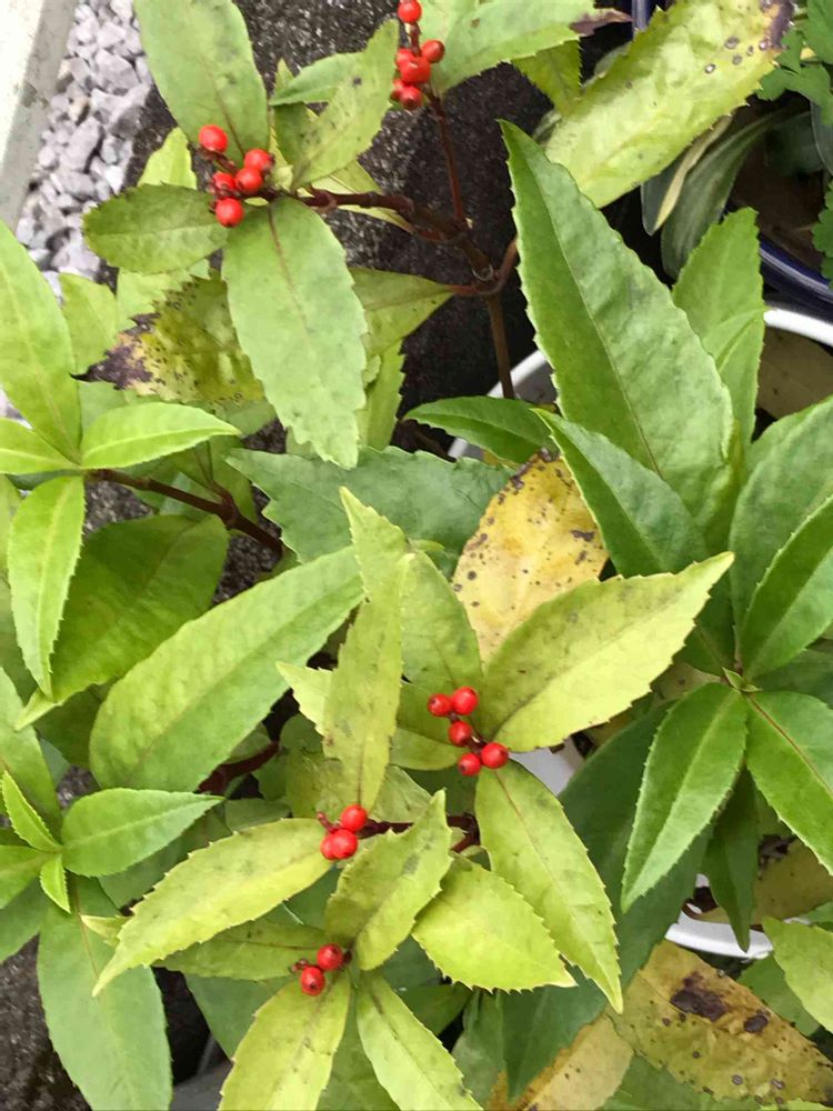 センリヨウの子孫はやがて我が家の植木鉢に残り実をつけて生きている。