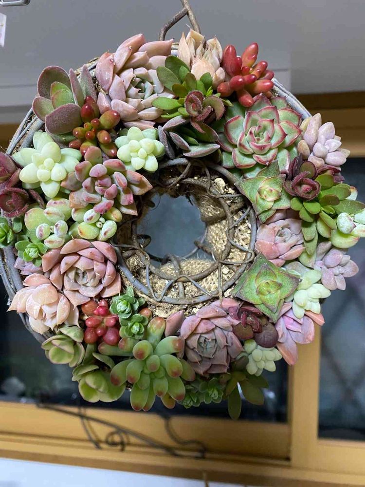多肉植物のリース色とりどりで素敵ですね🍀🧡❤️投稿見て頂いてありがとう😉👍🎶ございます😄