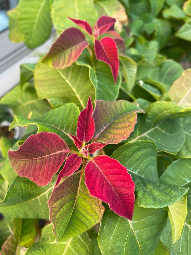 プリンセチアのピンクには程遠いけれど、毎年赤くなってくれるので愛着あります💓