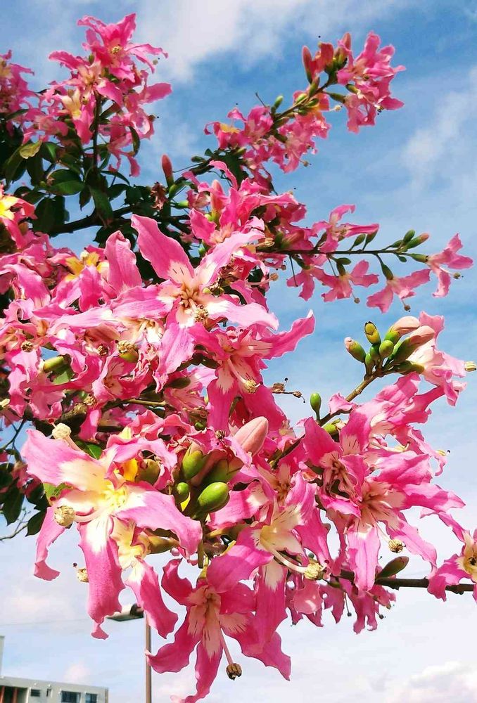 青空の天気が続いています!先日数輪しか咲いていなかったトックリキワタ💗💗満開(o^^o)