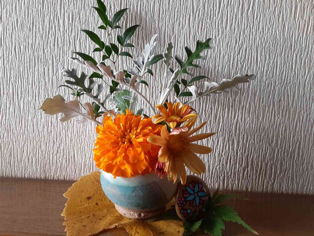 庭の冬支度も終わって、咲いてる花は、霜で茶色になったマリーゴールド、