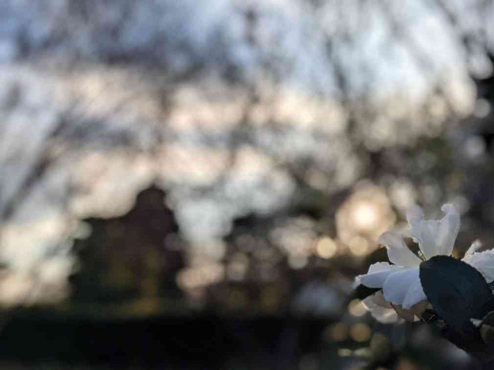 白い山茶花にも陽が差して来ました。今日も良いお天気です。