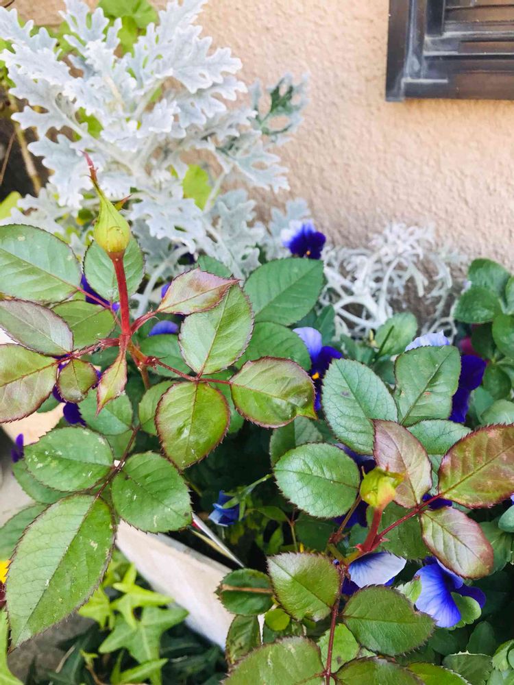 玄関先の寄せ植えのミニバラに蕾が🌹