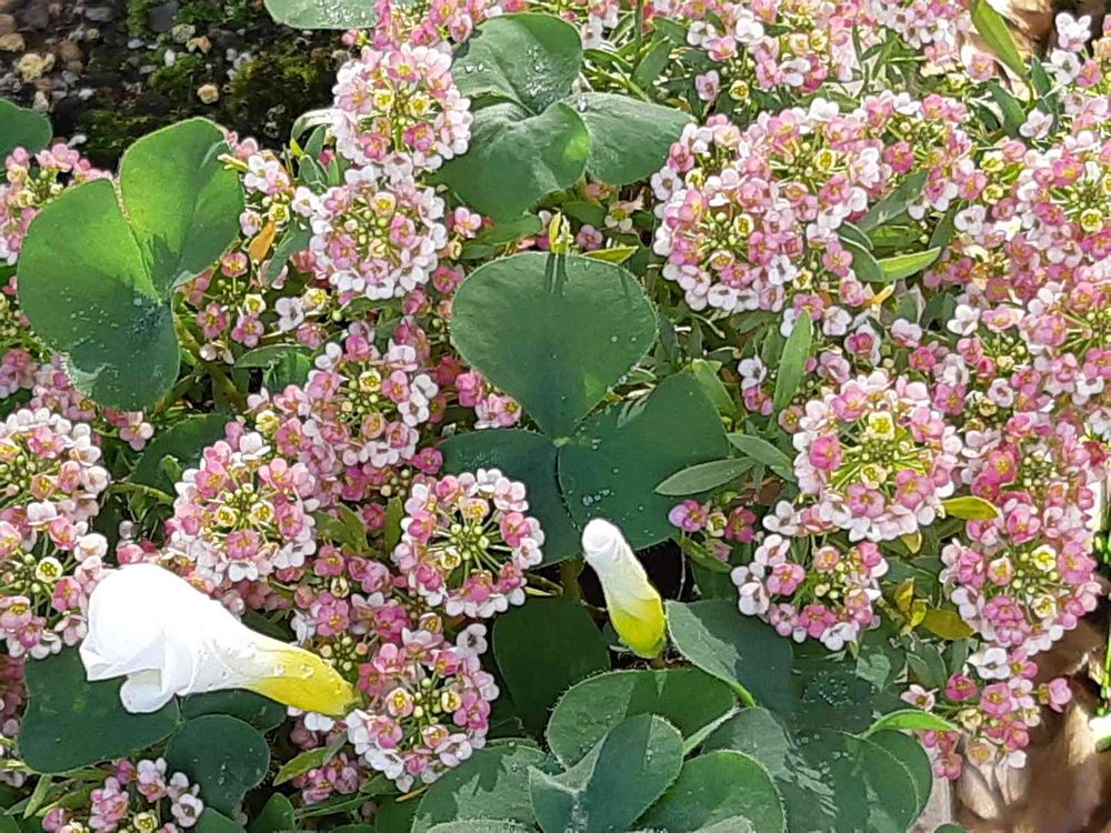 ピンクアリッサムとホワイトオキザリスのコラボ😄🍀