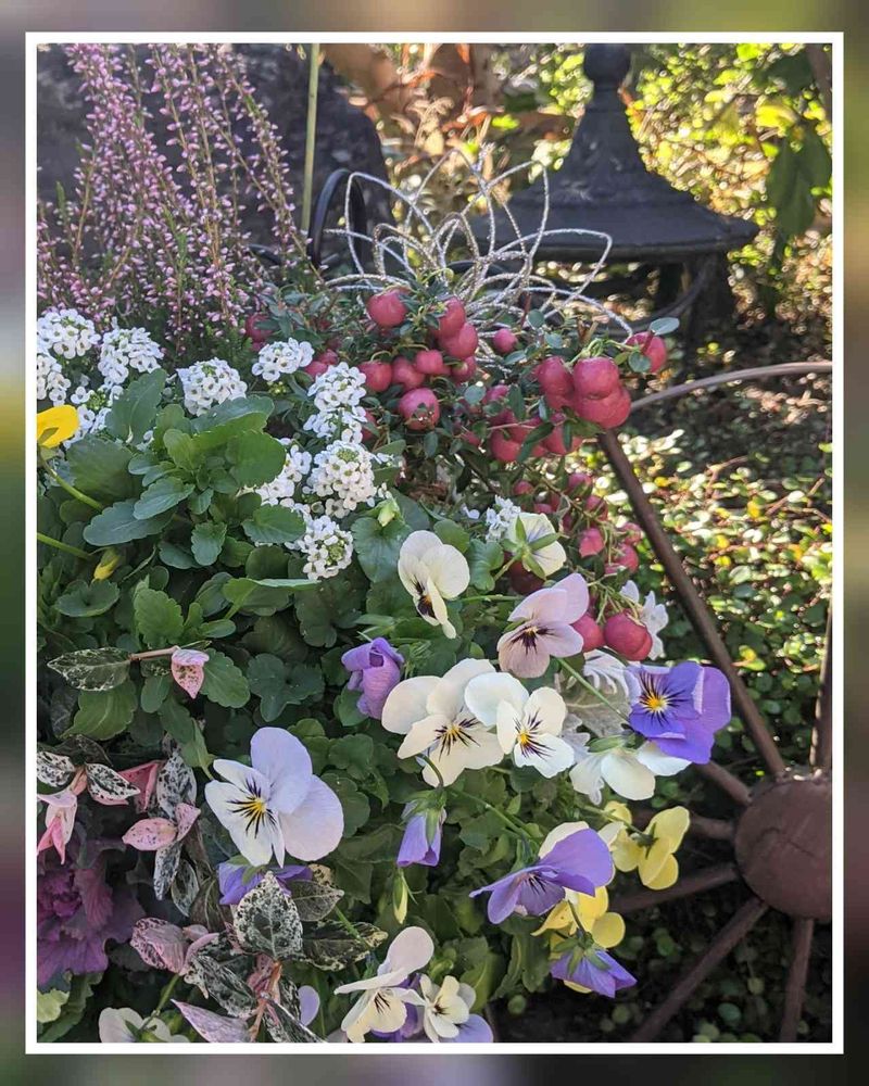 きょうは2回目のハンギングバスケットのレッスン 今日のお花のアリッサムも可愛いです🎶ちょっとクリスマスらしさも取り入れて赤い実の真珠の木も…