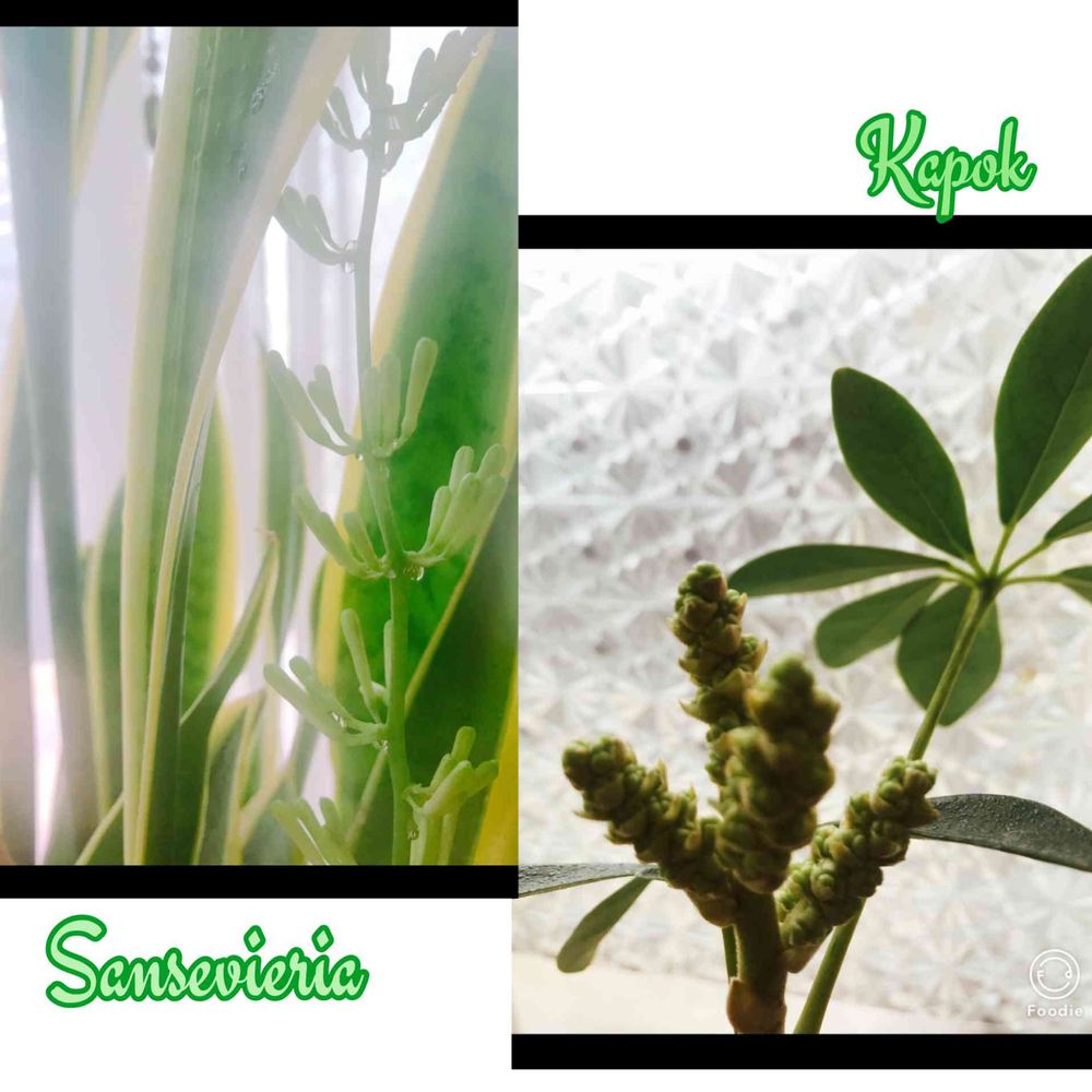 サンセベリアは買ってから 3回位咲いたんだよ✨ カポックの方は 生まれて初めて見た。珍しいよね。
