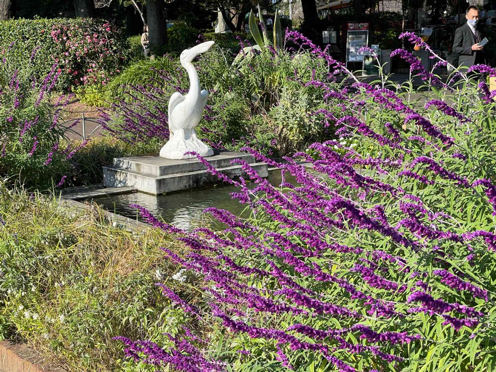 噴水とアメジストセージ(ではないかと思います)😊👍
