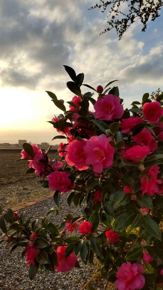 山茶花、夕日に照らされて赤く綺麗ですね✨💞