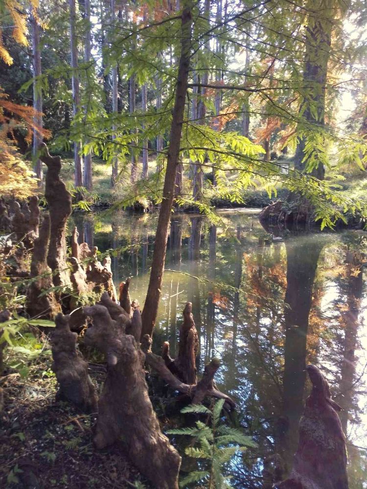水面に映る木立と、ヌマスギが対照的で神秘的なpicですね🤗