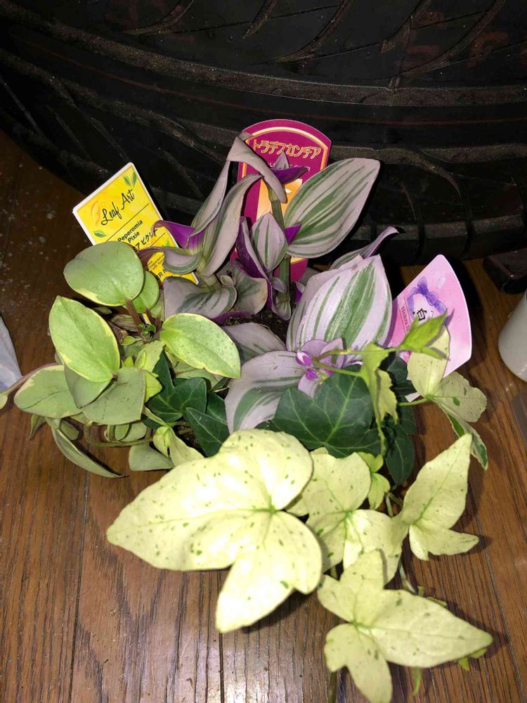 トラデスカンチア、ヘデラ、ペペロミアの寄せ植え