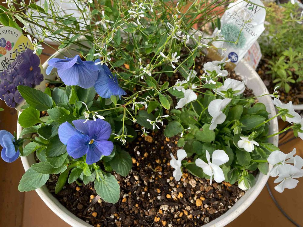昨日の寄せ植え。よく咲くスミレの爽やかなブルーと、白いビオラ。キレイにモリモリになるといいなぁ。ユーフォルビアダイヤモンドフロストは前に購入したものを一緒にしました💕