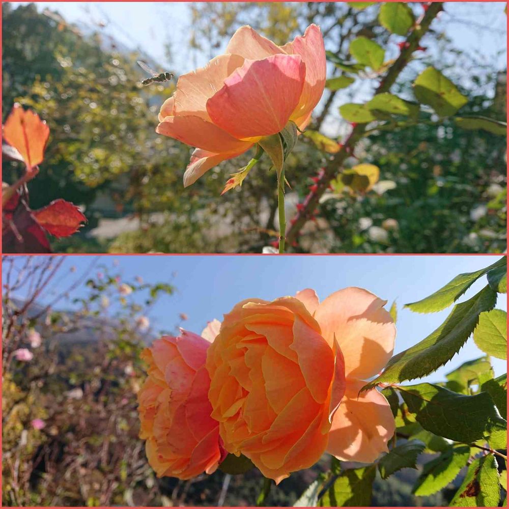 生家の薔薇、アバウトフェイス様❣️。逆光に透けてとても綺麗でした。