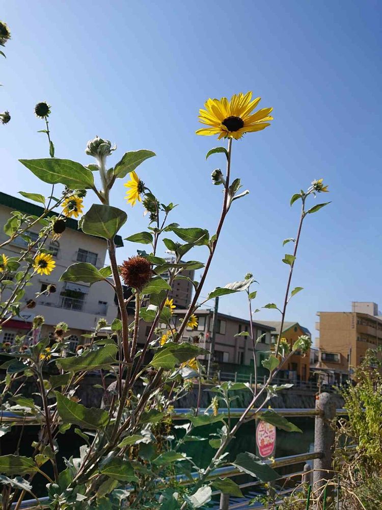 このヒマワリは夏からずっと咲いています。お花が小さめのヒマワリです🌻