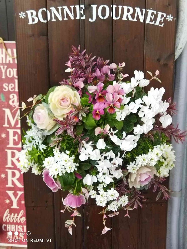 葉牡丹、シクラメン、ネメシア、イベリス…素敵なハンギングですね💕