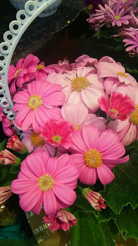 可愛い(๑>ᴗ<๑)ピンク色🌸🌸🌸なんだろう?マーガレット?サイネリア?どちらにも似てますね🤗💕