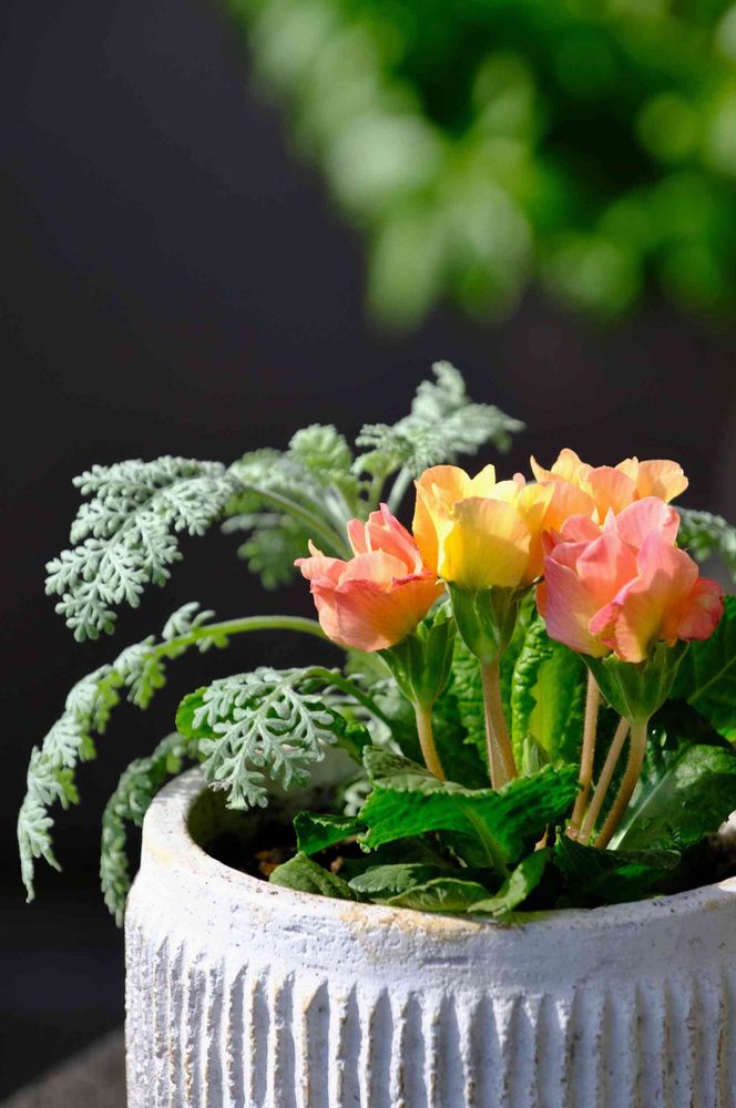 新しくお迎えした八重咲きジュリアンとシルバーレースの寄せ植え💕