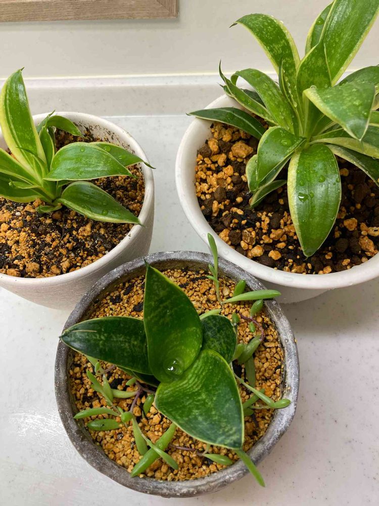 サンスベリア、テレビ上の親子を分けて久しぶりの水やり😅