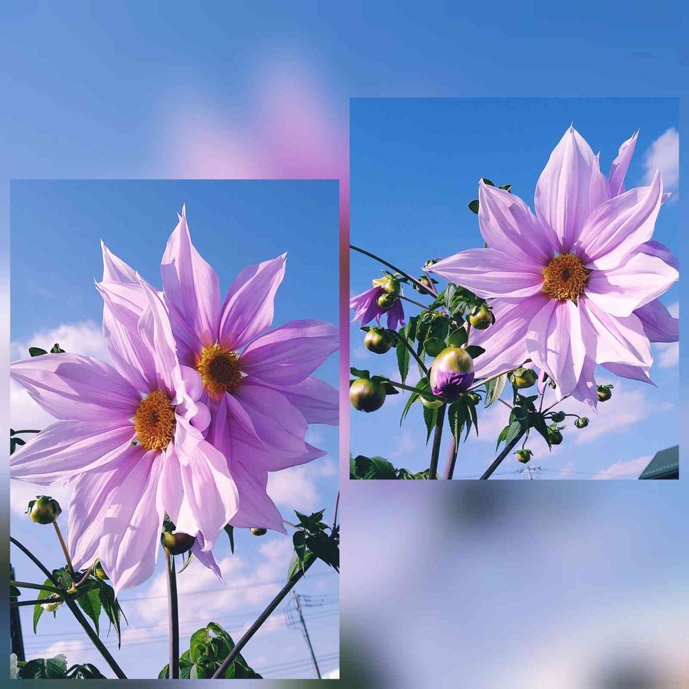 青空バックに皇帝ダリア⚛撮るのは素敵ですね💕