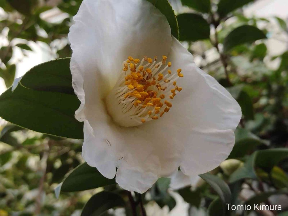 散歩道(京都丹波亀岡 南郷公園)に咲いていた「白椿」です。