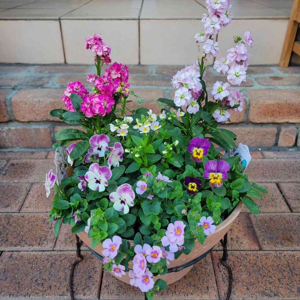 もちろんこのピンクの寄せ植えもダブルデッカ-植え、チューリップの球根も一緒です🌷