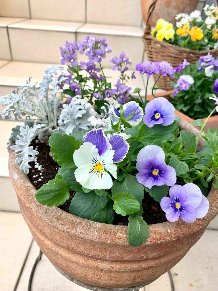 青💙紫💜系の寄植えも上品な可愛さがとっても素敵ですね✨✨
