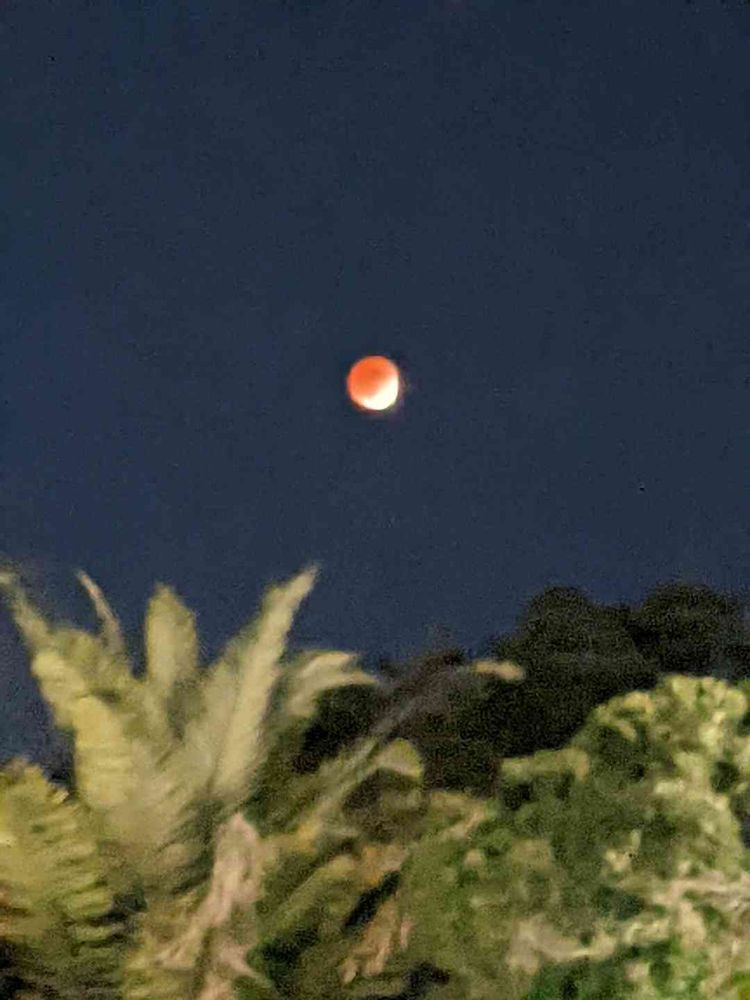暗くなってもなかなか🌒が昇らなくてしばらく待って撮りましたがすぐ帰宅して撮ってみたら肉眼と写真では違って全体が赤くなってしまいました。🌕タイミングってあるのですね。