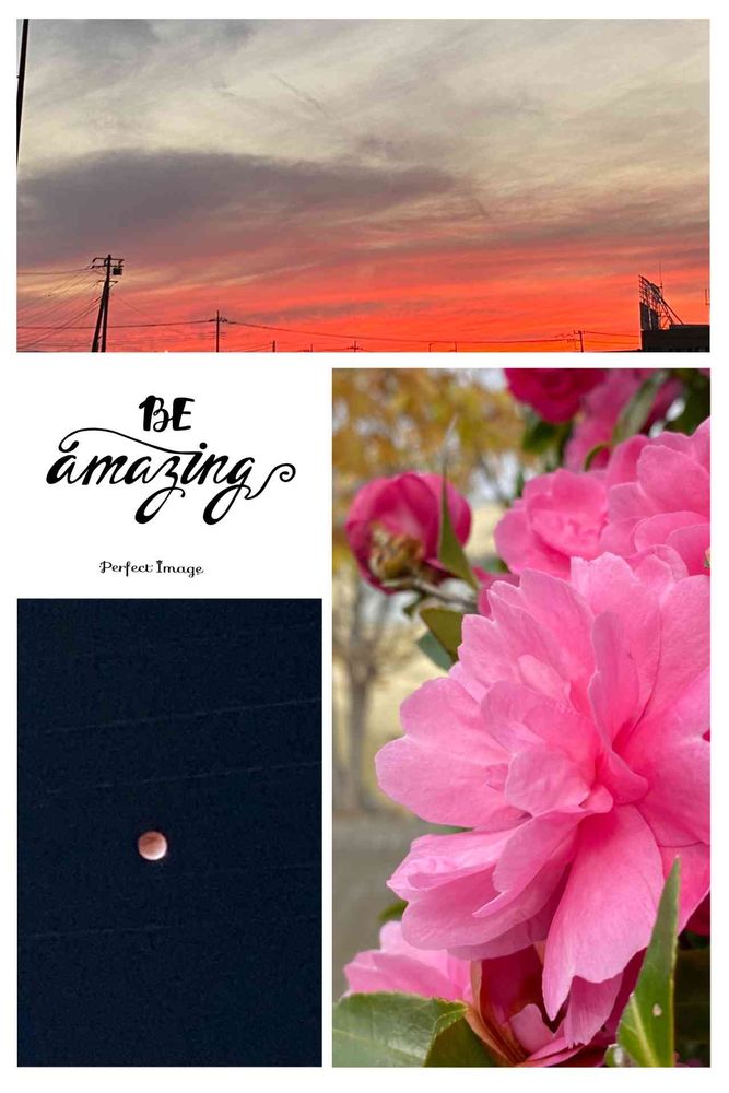 n i eさんの素敵な出会いに感謝,夕焼け空,ピンクの山茶花の投稿画像