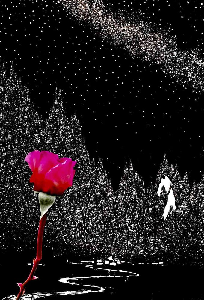 昔描いたペン画とバラをコラボして