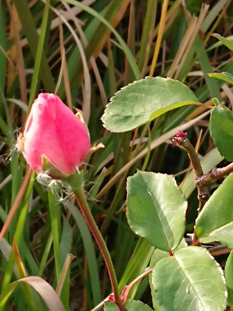 散歩道沿いの空き地に一本健気に咲いていた薔薇。