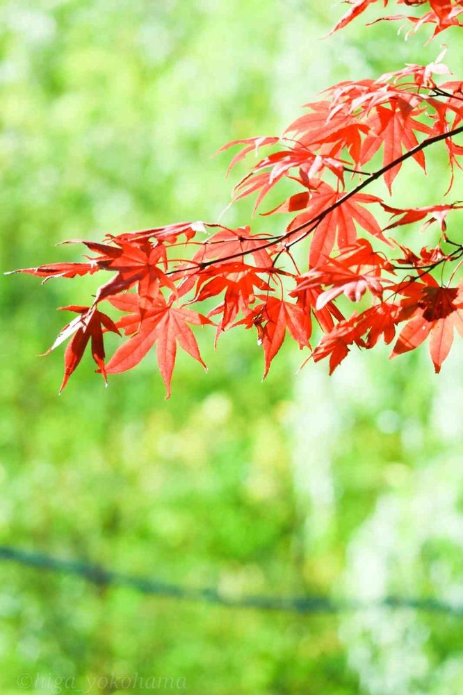 もみじの赤色に後ろの緑👵