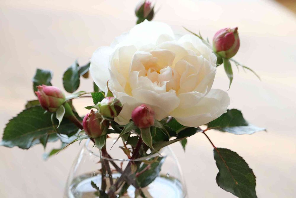 ステファニーさん、綺麗ですね🥰咲いてるのはもちろん、蕾が赤いのが💕白い薔薇に赤い蕾の組み合わせ、好きなんですよね✨