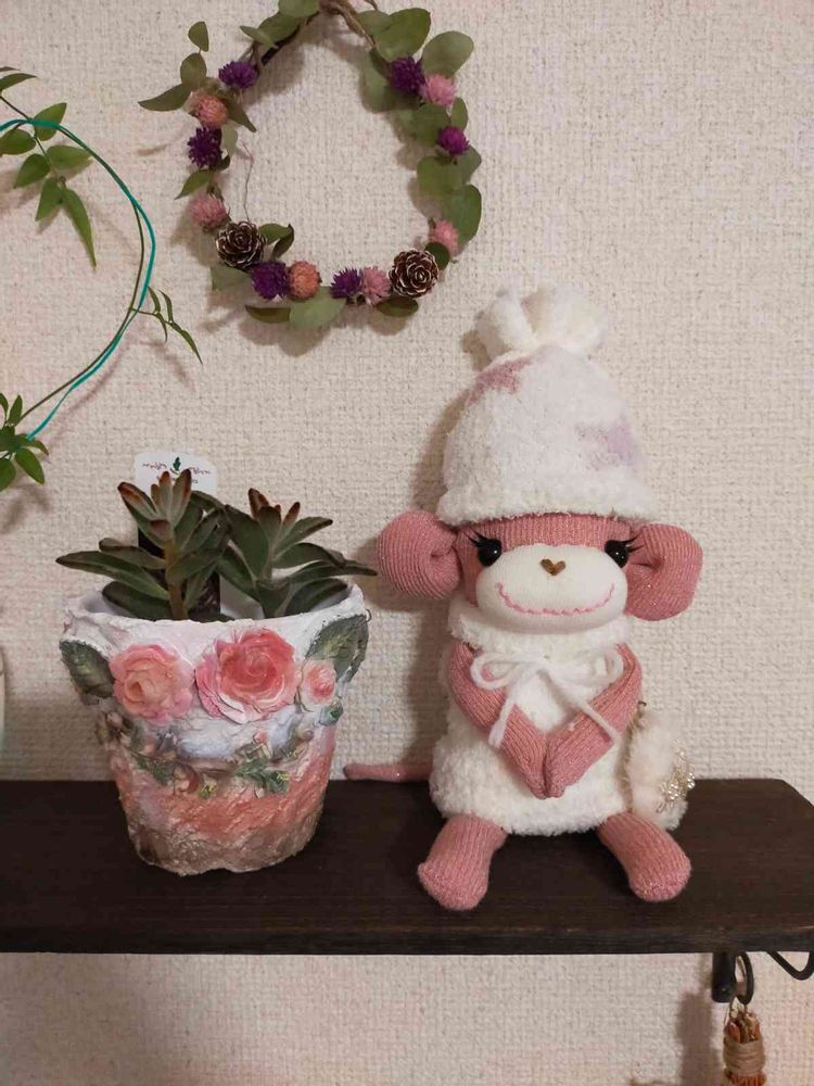 yubaraさんに作っていただいた、素敵なゴージャス🌹鉢とぷりまみさんに作っていただいた、かわいいソクモン(ピンキーちゃん💗🐒)で…