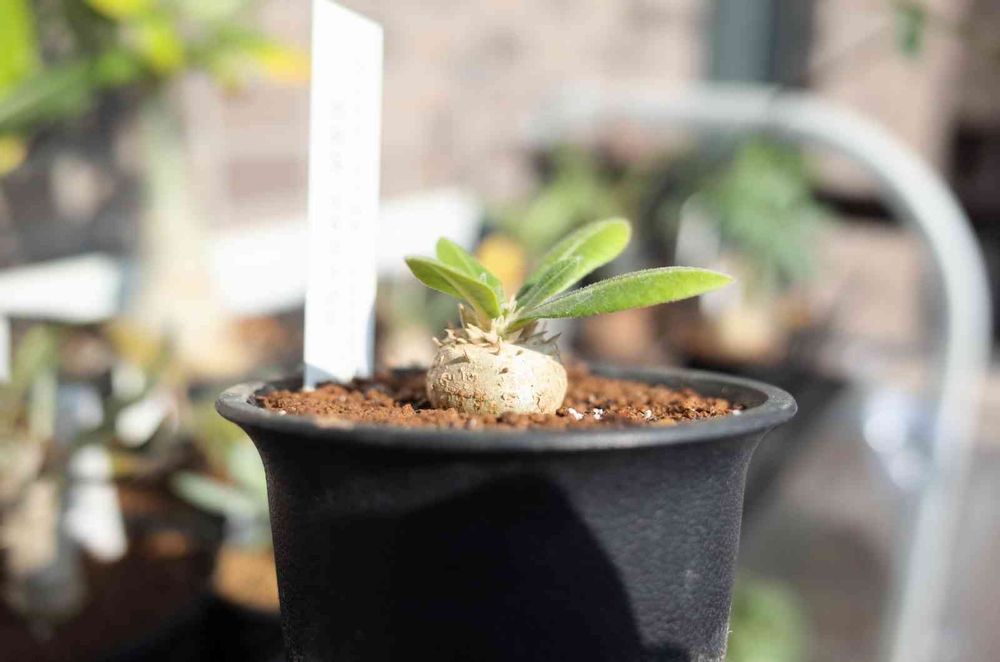 こちらはミニミニ笑い。大きい子は冬眠中ですが、この子はまだまだ元気で新芽も出てきてます!!このまるっとしたフォルムと頭の葉がなんとも言えない愛らしさ✨✨