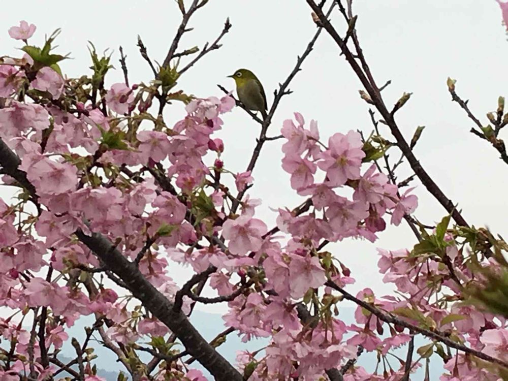 河津桜とメジロちゃん。